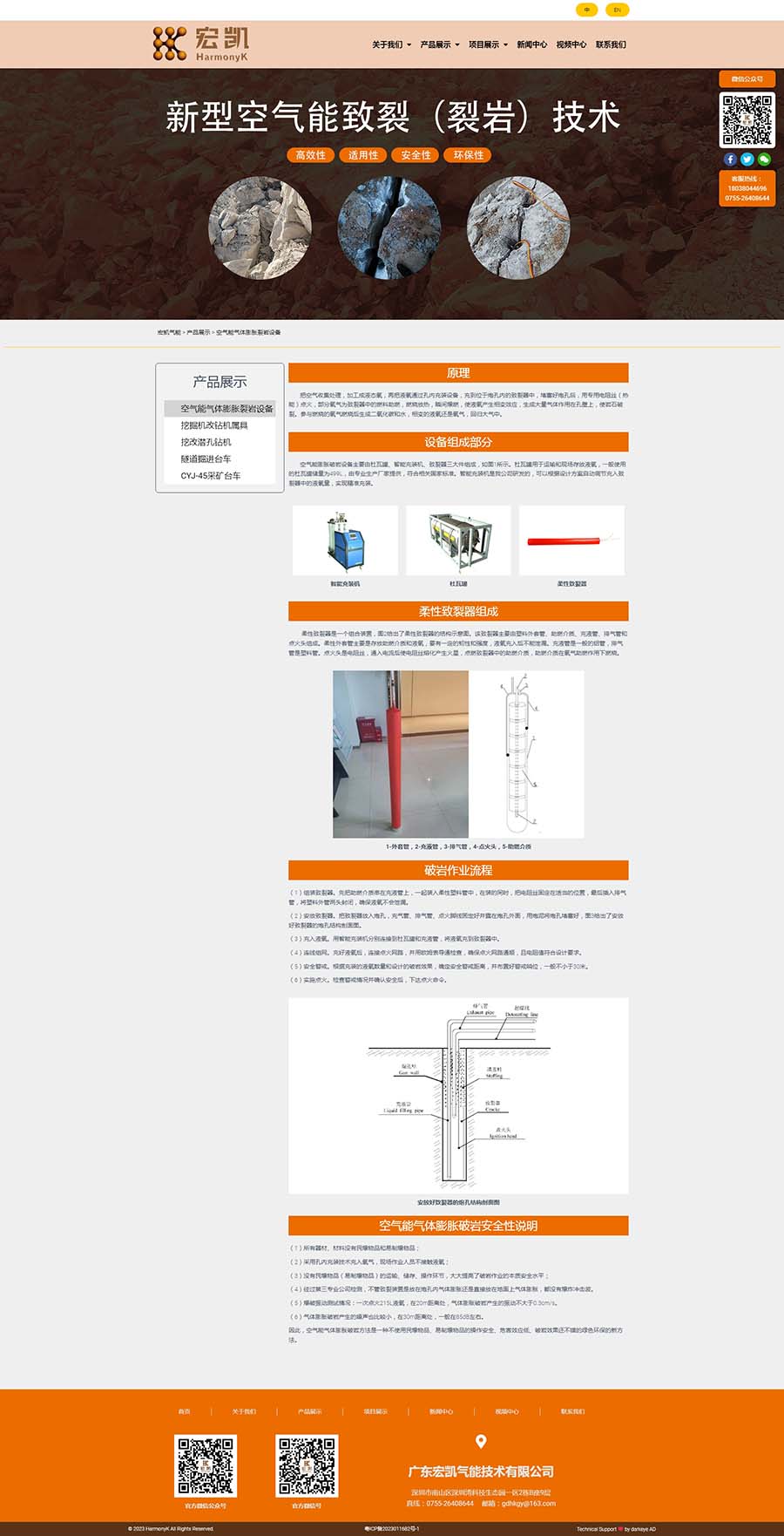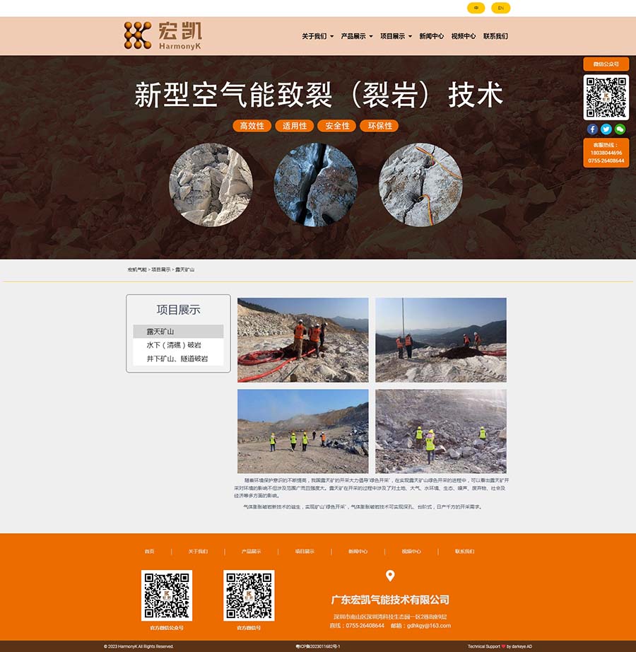 廣東宏凱氣能技術(shù)有限公司是國家高新技術(shù)企業(yè)深圳宏業(yè)基巖土科技股份有限公司子公司,坐落在深圳市南山區(qū)粵海街道高新區(qū)社區(qū)沙河西路1809號深圳灣科技生態(tài)園2棟B902,注冊資金1000萬人民幣。公司專注于氣能相變裂巖技術(shù)與相關(guān)設(shè)備的創(chuàng)新研發(fā),承攬露天礦山、基坑開挖、城市市政、道路擴(kuò)建、地鐵隧道掘進(jìn)及水下礁石清理等靜態(tài)氣體膨脹破巖工程。公司開發(fā)的新型氣能破巖技術(shù)擁有核心專利技術(shù)40余項(xiàng),參與起草制定行業(yè)標(biāo)準(zhǔn),企業(yè)標(biāo)準(zhǔn),其技術(shù)處于國內(nèi)外領(lǐng)先水平,并獲得中國爆破行業(yè)協(xié)會科技進(jìn)步二等獎。